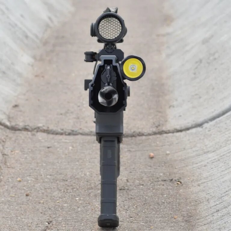 Predpažbie HB Industries M-LOK 7,8" CZ Bren 2 zachováva voľný, beznástrojový prístup k regulátoru plynov na plynovej násadke v prednej časti predpažbia. Upravíte režim plynov rýchlo a bez demontáže predpažbia, čo zjednodušuje streľbu v rôznych podmienkach. To oceníte pri rýchlych prechodoch medzi použitím zbrane s alebo bez tlmiča alebo pri čistení.