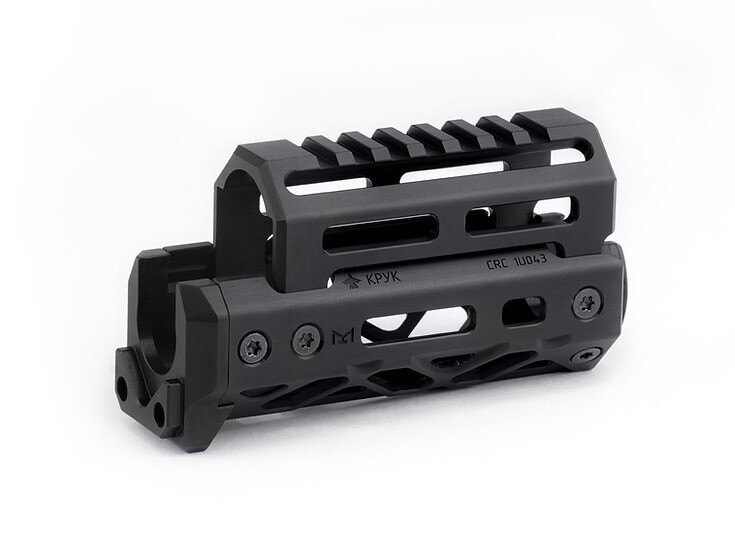 Kpyk navrhol predpažbie tak, aby pasovalo na štandardné montážne body AKS-74U – bez rezania, bez pilovania, bez potreby zbrojára. Uchytenie je isté a stabilné, či už sa použije originálna plynová trubica alebo aftermarketový variant.