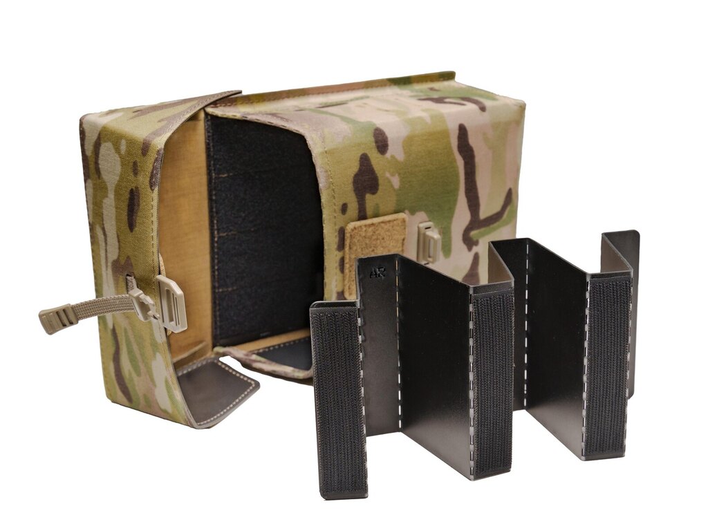 Toto puzdro je vyrobené z vysokokvalitných materiálov, ktoré odolávajú náročným podmienkam a zaťaženiu. Dostupné maskovacie vzory poskytujú skvelú kamufláž v rôznych prostrediach. Konštrukcia je navrhnutá tak, aby zabezpečovala maximálnu kompatibilitu s modernými nosnými systémami (MOLLE/PALS).