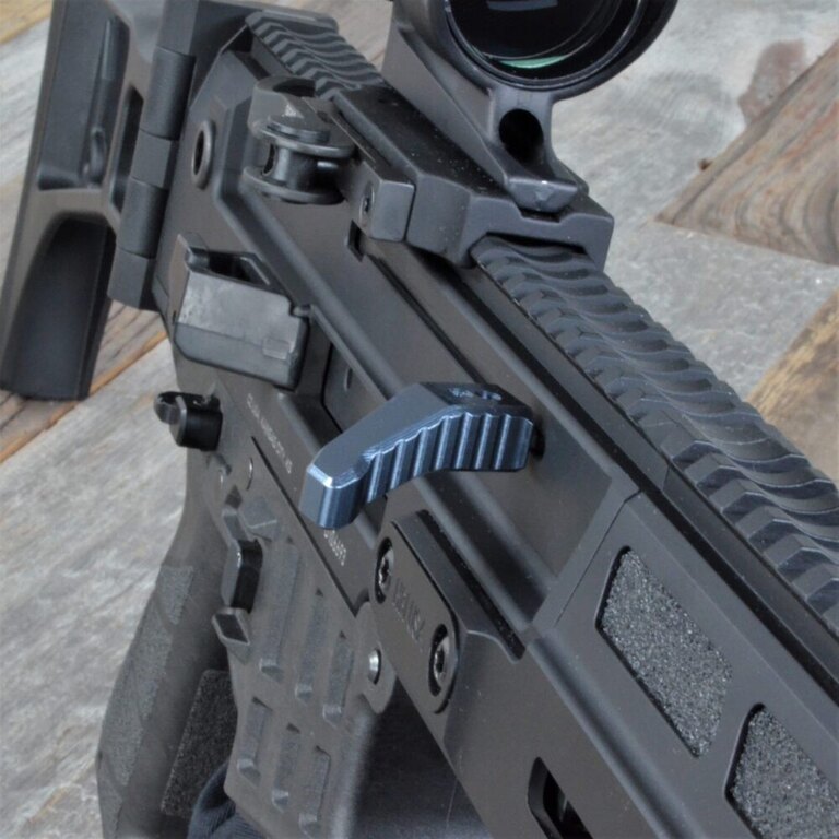 Offset naťahovacia páka záveru CZ Bren 2 HB Industries predlžuje celkovú dĺžku páky, zároveň sa páka zalamuje smerom dole, aby poskytla dodatočný priestor medzi namontovanou optikou a vašimi prstami. Rovnako došlo aj k zmene ergonómie naťahovacej páky. Všetky tieto faktory dohromady výrazne zlepšia manipuláciu s naťahovacou pákou.