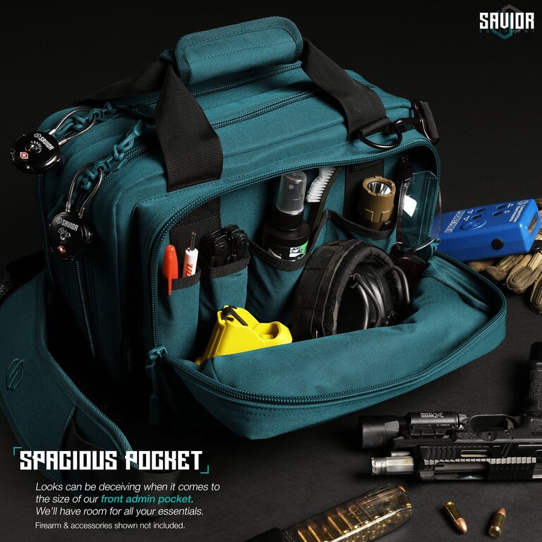 Okrem priehradok na pištole a veľkého predného administračného vrecka nájdeme v rámci tejto streleckej tašky ešte ďalšie 2 odnímateľné odkladacie puzdrá, ktoré majú čiastočne transparentné veko a vďaka tomu môžete bez otvárania rozlíšiť, čo sa vo vnútri nachádza. Ďalej tu je ešte jedno uzamykateľné vrecko, o ktorom sme sa ešte nezmienili, a polstrovaný ramenný popruh.