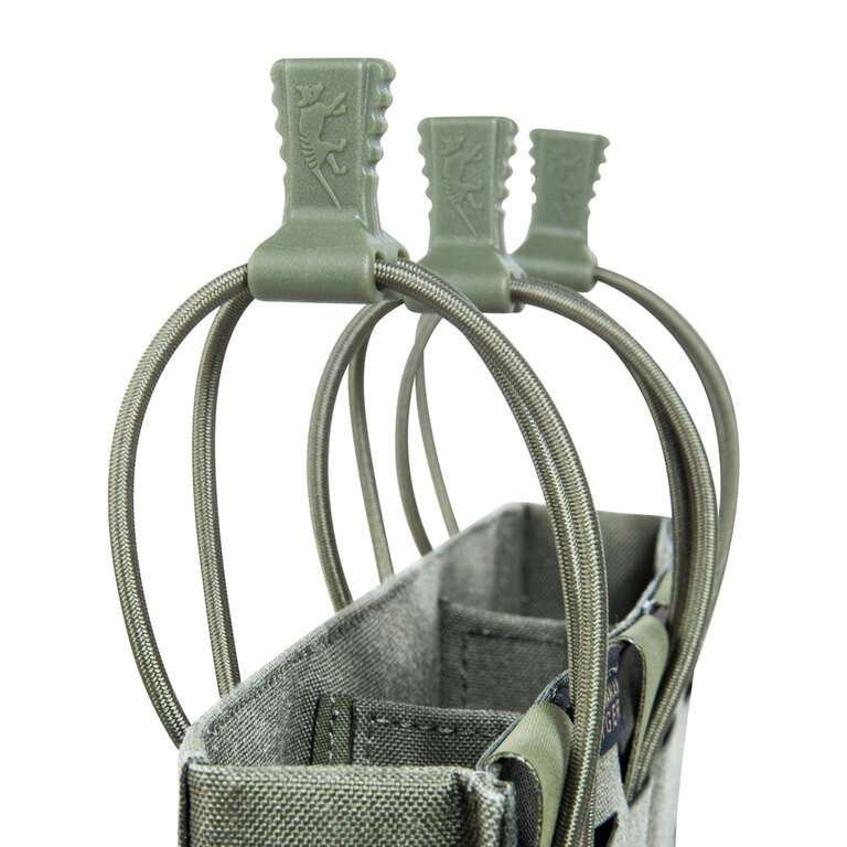 Sumka je navrhnutá tak, aby pevne držala zásobníky na mieste a súčasne umožňovala ich ľahké vytiahnutie jednou rukou. Otvorená konštrukcia v kombinácii s elastickými fixačnými prvkami poskytuje optimálnu rovnováhu medzi bezpečnosťou a rýchlosťou prístupu.