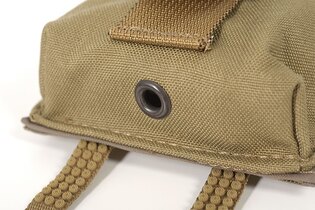 Zadná strana sumky je doplnená o modulárnu väzbu, vďaka ktorej môžete sumku pripevniť k akémukoľvek MOLLE/PALS kompatibilnému vybaveniu. Sumka je vyrobená z odolných materiálov, takže vydrží aj náročné bojové podmienky. Dno sumky je doplnené o otvor pre odvod vody.