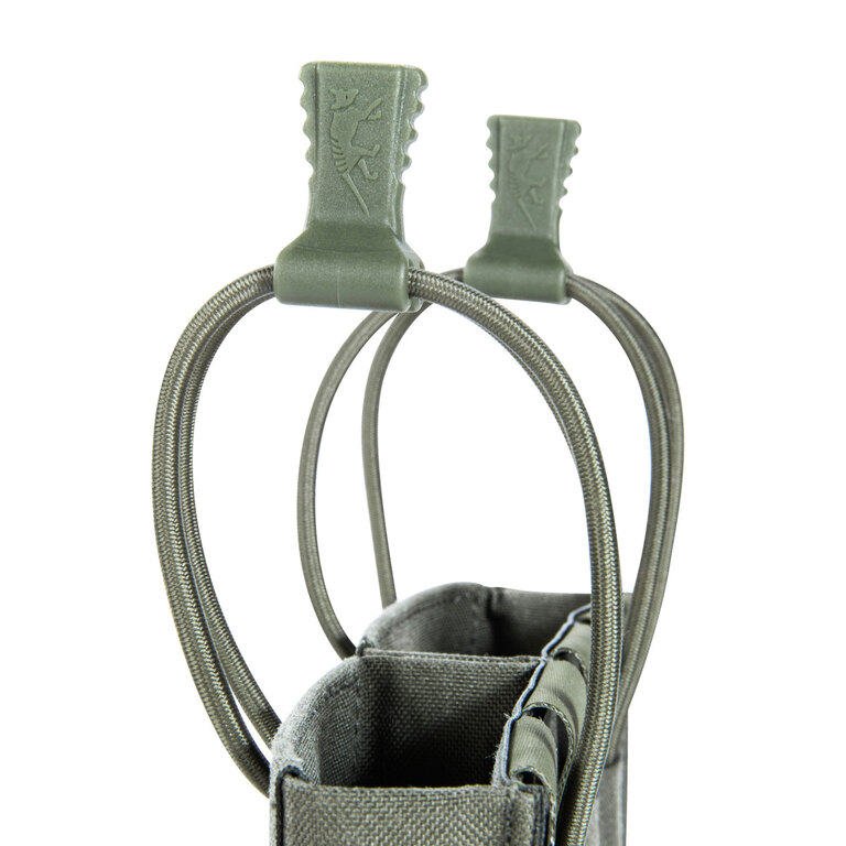 Sumka je navrhnutá tak, aby pevne držala zásobníky na mieste a zároveň umožňovala ich jednoduché vytiahnutie jednou rukou. Otvorená konštrukcia v kombinácii s elastickými fixačnými prvkami poskytuje optimálnu rovnováhu medzi bezpečnosťou a rýchlosťou prístupu.