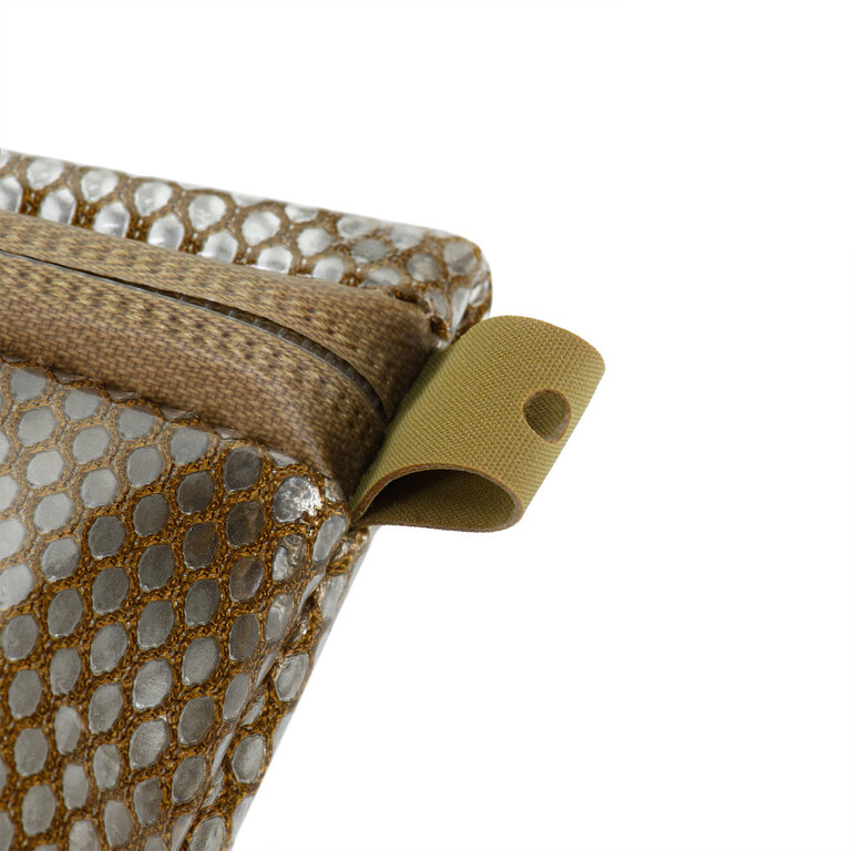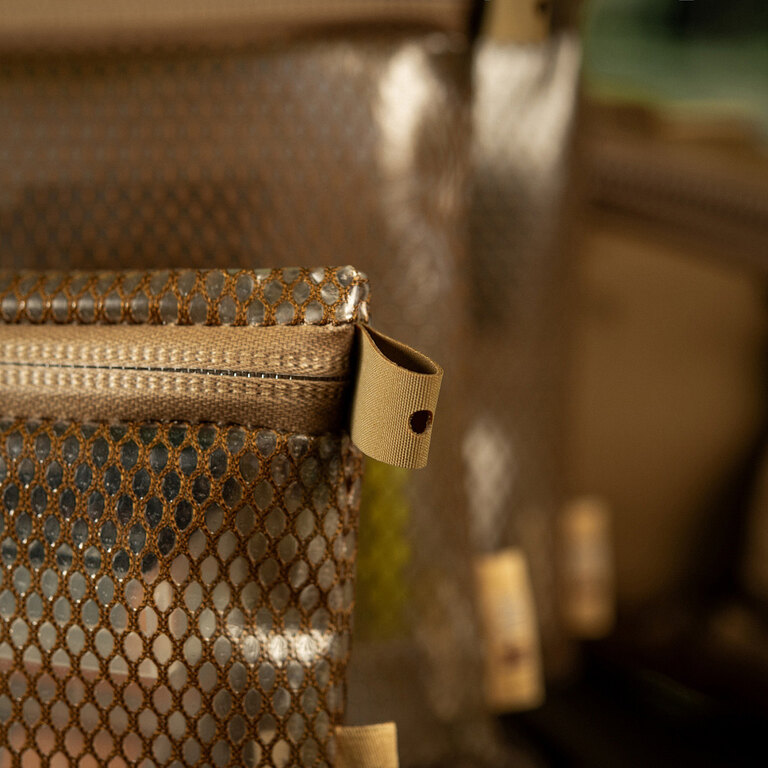 Vrecká sú vyrobené z laminovanej PVC sieťoviny, ktorá kombinuje vysokú pevnosť a odolnosť s ľahkosťou. Materiál znesie časté používanie, ohyb aj menšie nárazy, pričom zachováva kompaktné rozmery s minimálnou váhou. Kvalitné zipsy umožňujú hladké otváranie a zatváranie aj pri častom používaní.