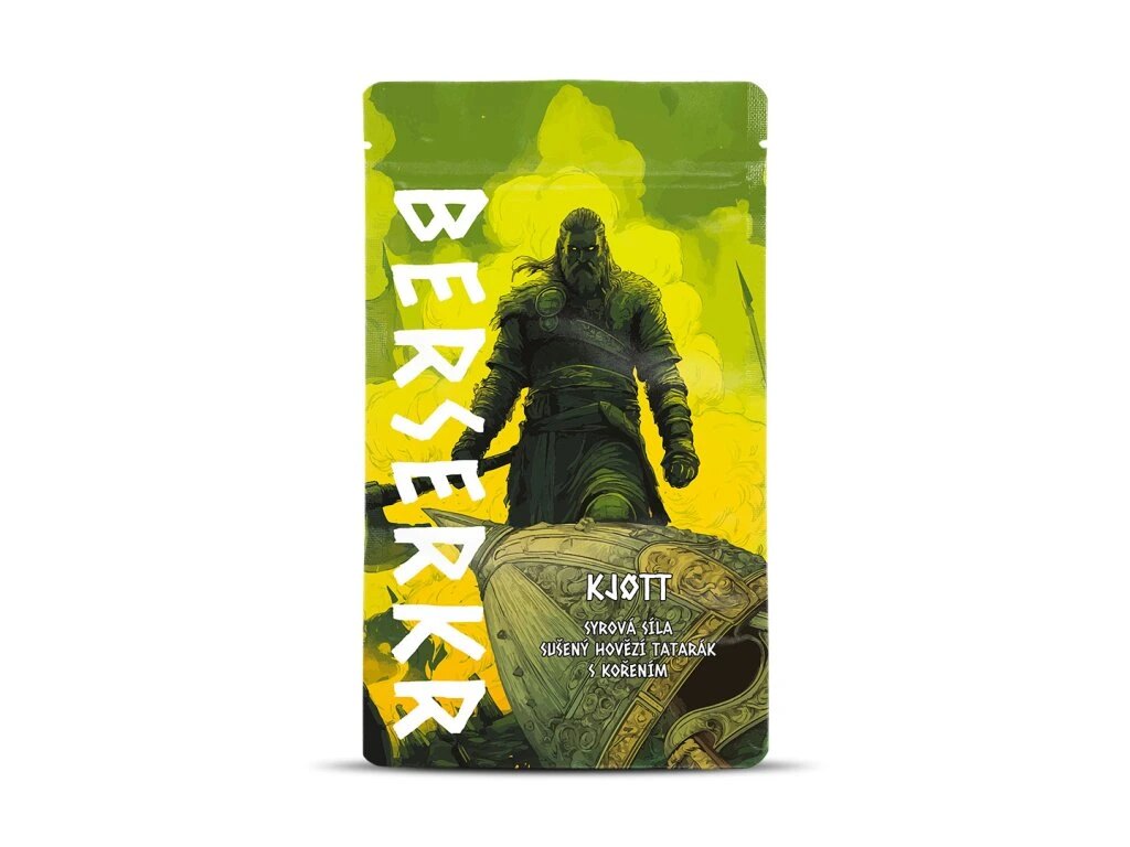 KJØTT Sušený tatarák Berserker je sušené hovädzie mäso (beef jerky) inšpirované chuťou klasického tataráku. Výrazný mäsový profil dopĺňa jemné korenie, ktoré vychádza z tradičnej receptúry a zachováva charakter známej chuti. Výsledkom je chuťovo výrazné jerky s plným mäsovým základom, ktoré ponúka alternatívu k bežným snackom. Vďaka sušeniu je mäso skladné a vhodné na cesty, do prírody i ako rýchla desiata počas dňa.