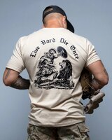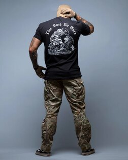 Tričko Die Once Brothers in Arms nie je pre tých, ktorí hľadajú pohodlie. Je pre tých, ktorí si všetko odpracujú. Každé vlákno pripomína, že život nie je o istotách, ale o odvahe. O tom, že sa hrá na výdrž, nie na výhovorky. Kto sa nebojí bolesti, chápe, že skutočný zmysel má len to, čo si človek vydrie.