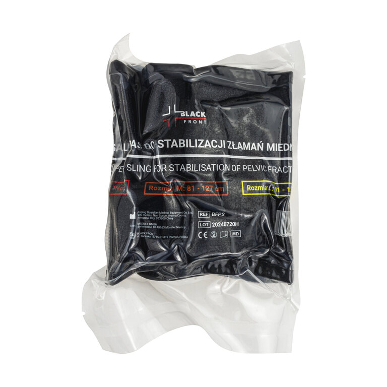 Black Front rovnomerne rozkladá tlak na zranenú oblasť, čo minimalizuje pohyb panvovej oblasti a znižuje bolesť. Pás umožňuje bezpečný transport pacienta aj pri náročných manévroch a je možné ho používať po celú dobu transportu aj ošetrenia.
