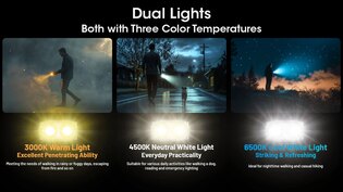 TINI 3 môžete prepínať medzi teplým, neutrálnym a studeným svetlom, takže sa ľahko prispôsobí počasiu, priestoru aj tomu, čo je práve potrebné osvetliť. Teplé svetlo lepšie prechádza hmlou a dažďom, neutrálne drží verné podanie pri bežnej práci a studené ponúka maximálnu ostrosť v prírode. Každá teplota má k dispozícii päť úrovní jasu, takže sa dá nastaviť presne to, čo je potrebné.