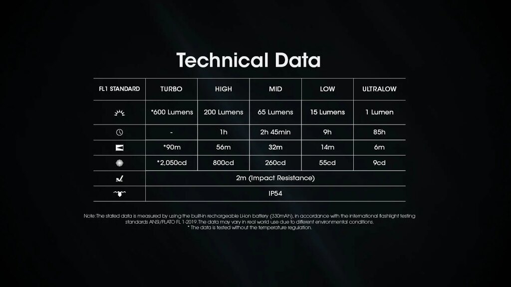 | Súčasťou dodávky | Svietidlo 1× nabíjateľný Li-ion akumulátor 330 mAh (integrovaný) Nabíjací kábel s konektorom typu USB-C Kľúčový krúžok s karabínkou |