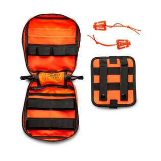 Autolekárnička PTR ponúka prehľadné vnútorné členenie s elastickými úchytmi, ktoré držia každú pomôcku presne tam, kde má byť. Otvára sa ľahko a rýchlo, aj jednou rukou. Zadný panel s rýchloupínacím MOLLE systémom zaistí, že autolekárničku môžete bezpečne upevniť a zároveň ju v krízovej situácii bleskovo odňať.