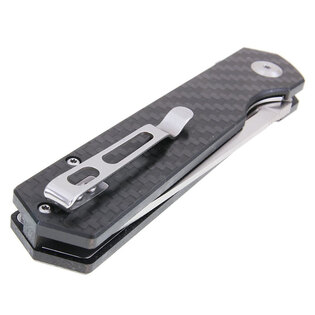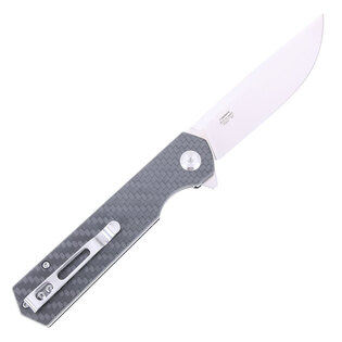Rukoväť noža je vyrobená z uhlíkových vlákien, ktoré vynikajú nízkou hmotnosťou a vysokou odolnosťou. Rukoväť obsahuje výrez na prsty pre stabilný a pevný úchop v akejkoľvek situácii. Nechýba ani kvalitná Flipper-Lock poistka pre maximálnu bezpečnosť pri používaní.