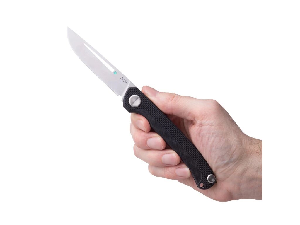 Čepeľ je vyrobená z nerezovej ocele Sandvik, ktorá je kryogenicky kalená. Použitý tvar ANV Swedge s profilom drop point vychádza z osvedčených konštrukčných riešení značky. Povrchová úprava stonewash obmedzuje viditeľnosť bežného opotrebenia. Pohyb čepele je riešený pomocou teflónových podložiek.
