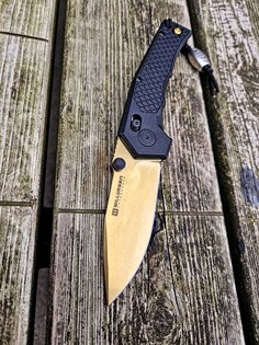 Nôž Zero vyniká skutočne jedinečným dizajnom. Kombinácia zlatej farby čepele a čiernej farby rukoväte je veľmi štýlová a spoločne tvorí dokonalé spojenie.