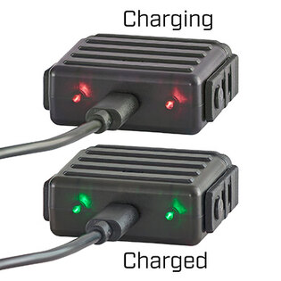 Svetlo využíva nabíjaciu batériu SL-B2, ktorá sa dobíja v priloženej stanici. V balení sú hneď tri kusy – jedna vo svetle, dve pripravené na výmenu. To znamená, že TLR-6 HL zostáva pripravené v akcii bez čakania na nabíjanie.